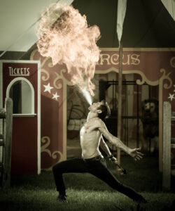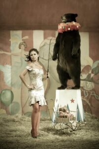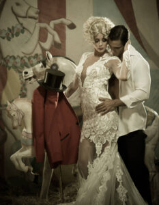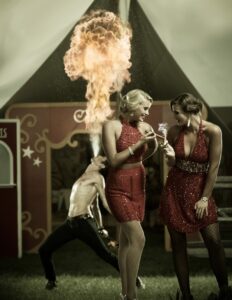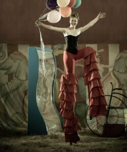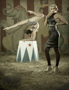 Phil Kramer, a Philadelphia photographer, tells the story of two women who escape to the American circus. They encounter a clown, a firebreather, a contortionist, a stilt-walker and a strongman. Through a series of fashion portraits, the circus comes to life and their adventure grows stranger.