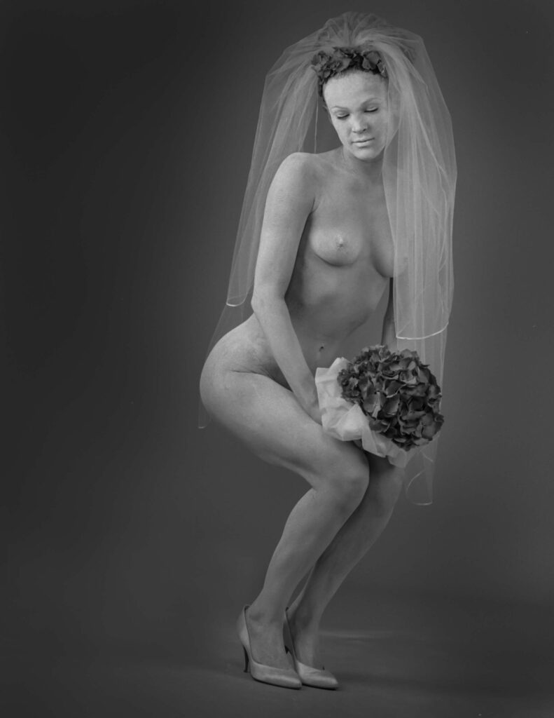 Phil Kramer, a fashion photographer in Philadelphia teams up with Denise Pereau, a hair and make-up artist, and Carol Gordon to create clay brides.