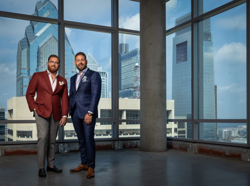 These two businessmen pose for their portrait feature in Philadelphia Style Magazine. It’s iconic to capture a photograph with Pyramid Club, Comcast Technology Center, and Liberty One in the background.