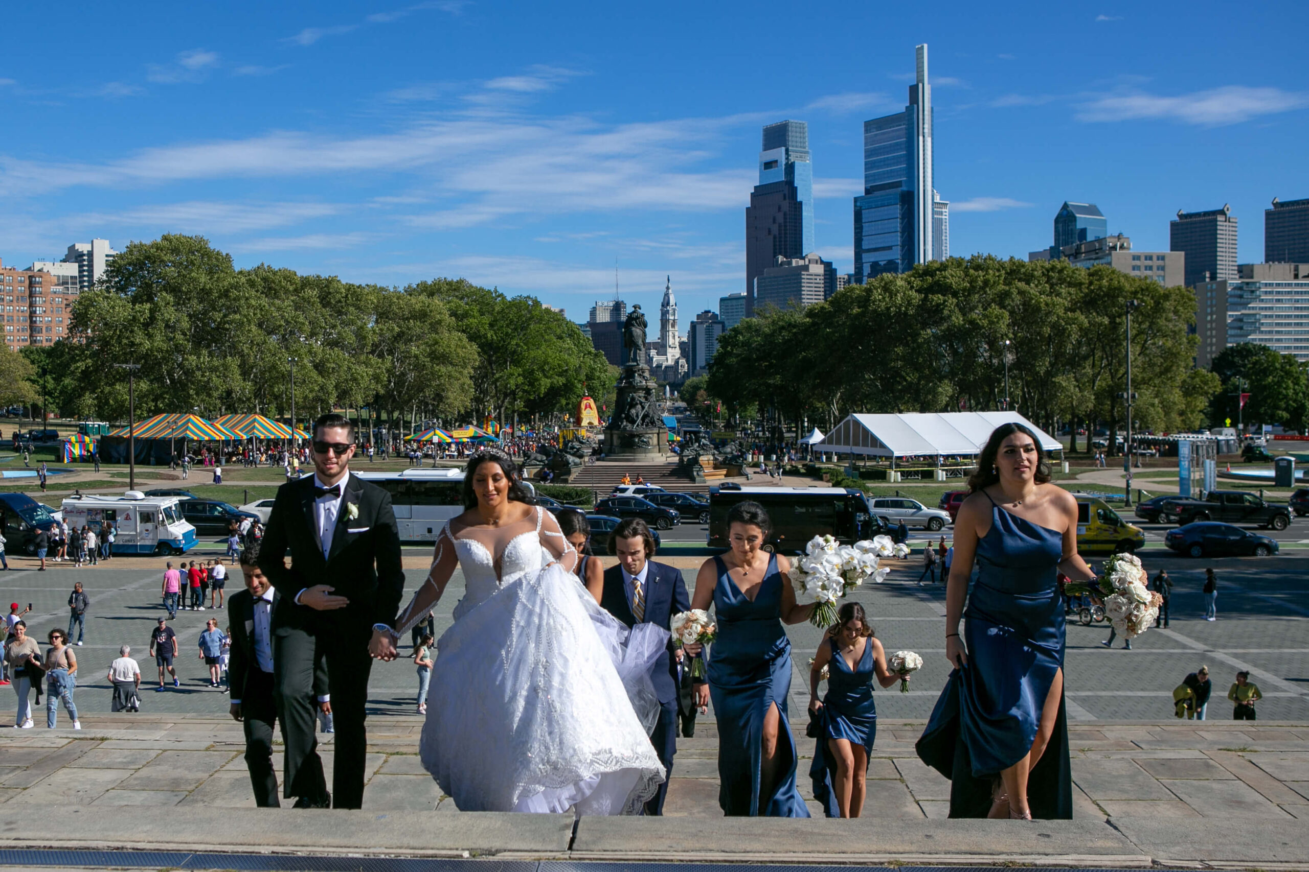 Phil Kramer captures a first look with the family, intimate wedding portraits at the Philadelphia Museum of Art, and of course, the iconic Broad Street median. Throughout the W, we capture photos at the Secret Garden. After cutting their wedding cake with a sword, we travel to the rooftop terrace for a captivating skyline shot of Philadelphia at night.